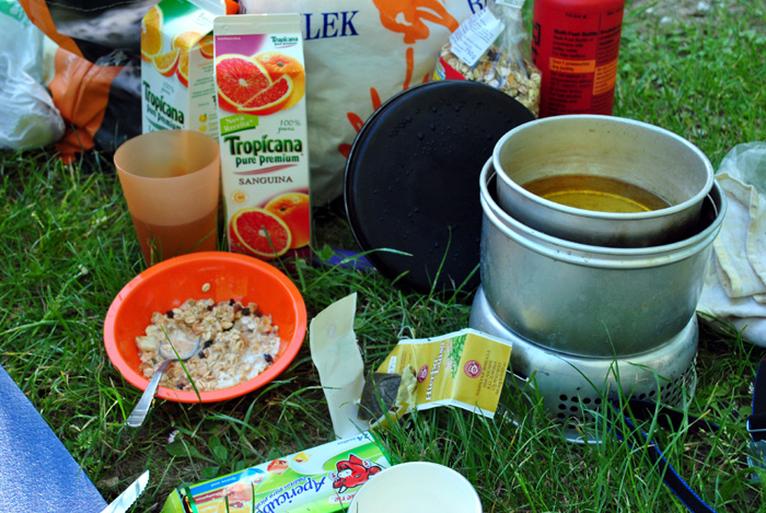Frühstücken vor dem Zelt. Unser tägliches Ritual.