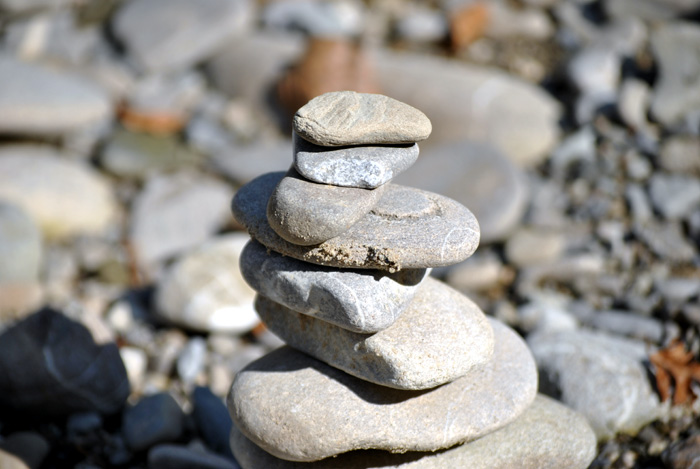 Der nächste Stein schön flach und glatt. Großflächig. Nett. Praktisch. Da lässt sich ganz schön viel drauf packen. Schicksale, Tiefschläge. Enttäuschungen. Abstürze. Tränen. Aber auch Glück. Glück hat Punkte. Glück hat ganz viele Knubbel auf der Oberfläche. Es muss sich in der Hand so anfühlen, als wäre alles drauf, was es an Glücksempfinden überhaupt gibt. Komprimiert. Ein Handschmeichler voller Glück. Entkomprimierbar, wenn ich ihn von Hand zu Hand reiche. Von der linken zur rechten. Und zurück. Und in die Hände meiner Freundinnen und Freunde. Oder eben, wenn ich ihm im Turm, im Steinfrauchen mit einbaue. Das immer größer, immer höher, immer wackliger wird, je länger ich lebe, je länger ich baue. Fällt es zusammen, ist nicht, wie ich schon sagte, der letzte Stein schuld. Keiner. Alle. Egal. Vielleicht ist die Höhe egal.