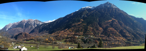 Wie Irgendlink und ich heute bergauf steigen, unterwegs alle fünf Meter stehenbleiben, mit Nikons und iFöuns Bild um Bild machen und ob der Schönheit der Natur um uns her kaum Worte finden, erkenne ich einmal mehr das Gehemnis der allem zugrunde liegenden Verbindung. Während ich mit dem Apfeltelefon dank einer entsprechenden, ziemlich cleveren Software names AutoStich drei Bilder zu einer langen Panoramasicht verbinde, sage ich: