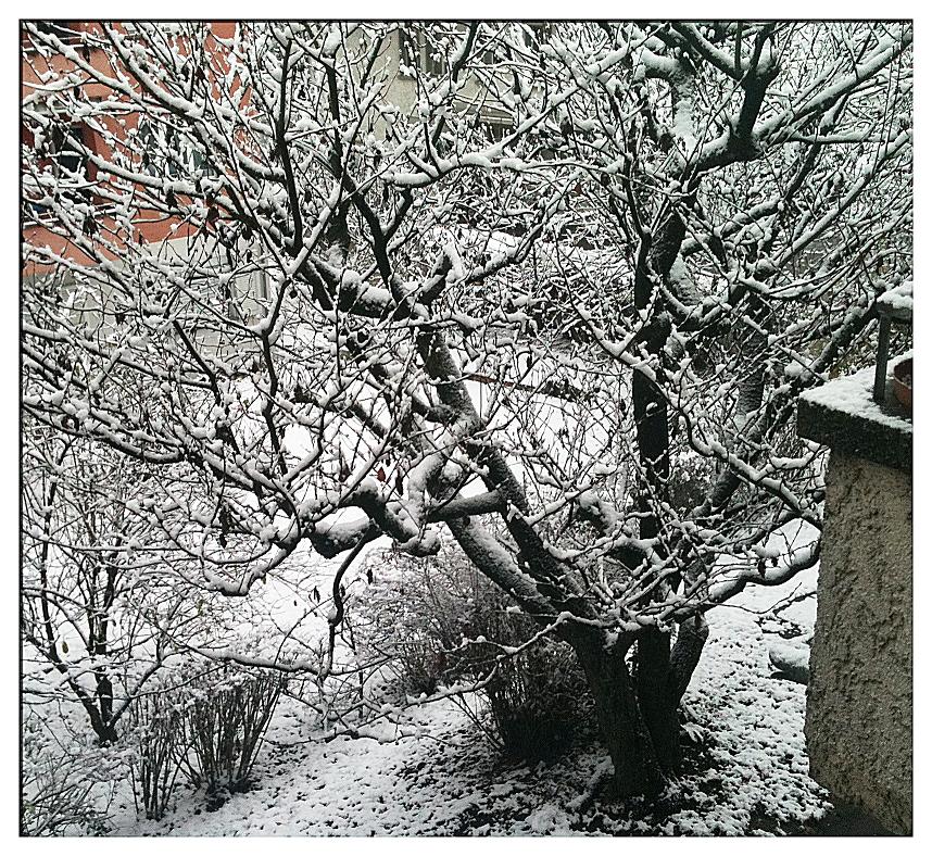 Als ich schlafen ging, muss es bereits eine Weile geschneit haben, denn alles war weiß. Ob ich mich gefreut habe? Über den Anblick irgendwie schon, ja, denn irgendwie sieht Schnee ja ganz nett aus.