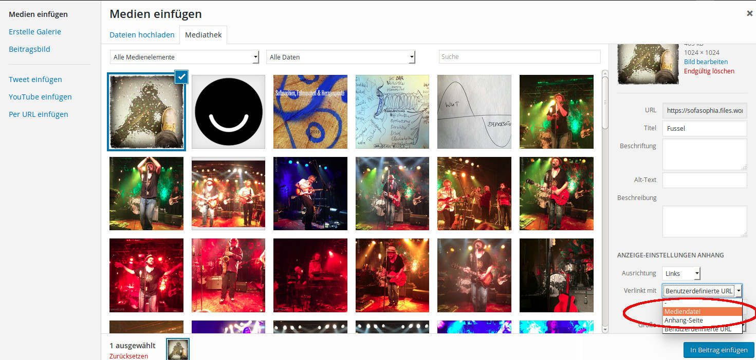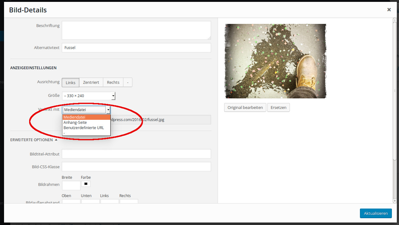 Warum es die einen Bloggenden es dennoch und bewusst so machen, ist mir ein Rätsel, aber bestimmt gibt es gute Gründe, Bilder über Anhang-Seite zu verlinken. Für alle anderen hier eine kleine Anleitung, wie ihr es ändern könnt. Du kannst es nämlich noch immer wählen, indem du nach dem Upload statt Anhang-Seite den Modus Bilddatei wählst.
