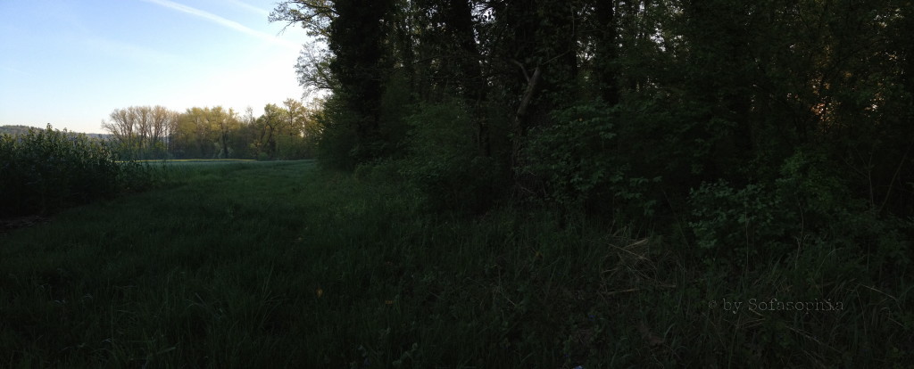 Was ich sehe, wenn ich geradeaus blicke: Bäume, Wiese, Rapsfeld