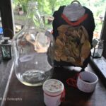 Die folgenden Bilder von Irgendlink und mir zeigen die Innen- und Außenräume des einsamen Gehöfts. Zu sehen sind die Galerieräume mit den behängten Wänden, die Terrasse mit Tresen samt Radelgalerie, der Hofplatz mit den Eingängen zur Galerie und zur Loppishalle, ein paar Schnappschüsse aus der Loppishalle, Menschen auf dem Hofplatz, die Feuerschale noch ohne Feuer und natürlich die Dartscheibe samt Dartpfeilen.
